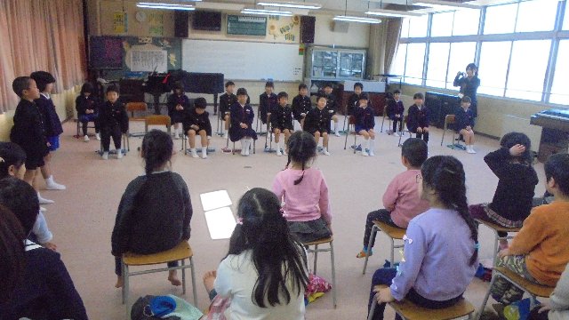 先週金曜に年長さんを迎える会をしました。4月に入学予定の18名が大海小学校を訪れました。