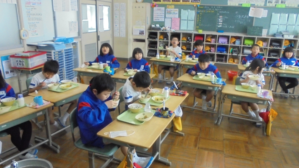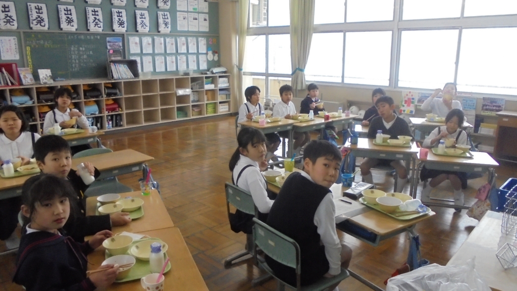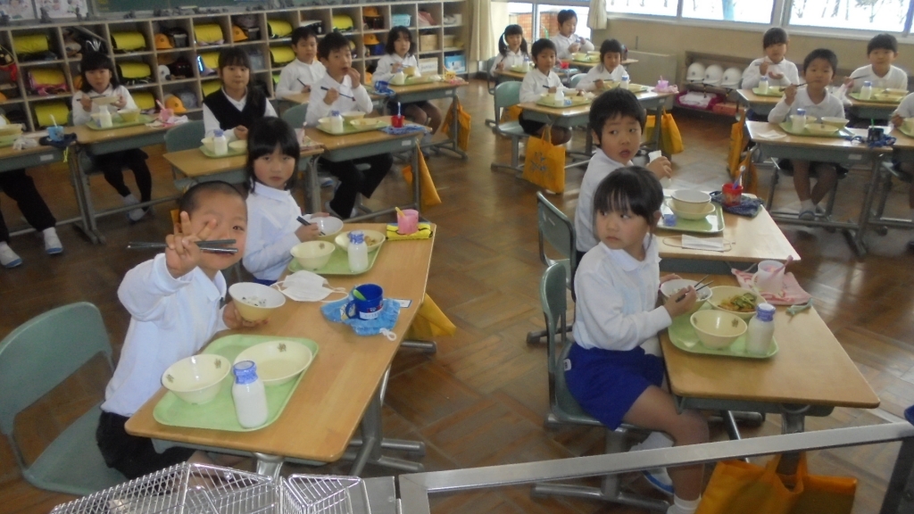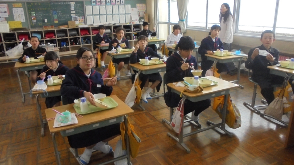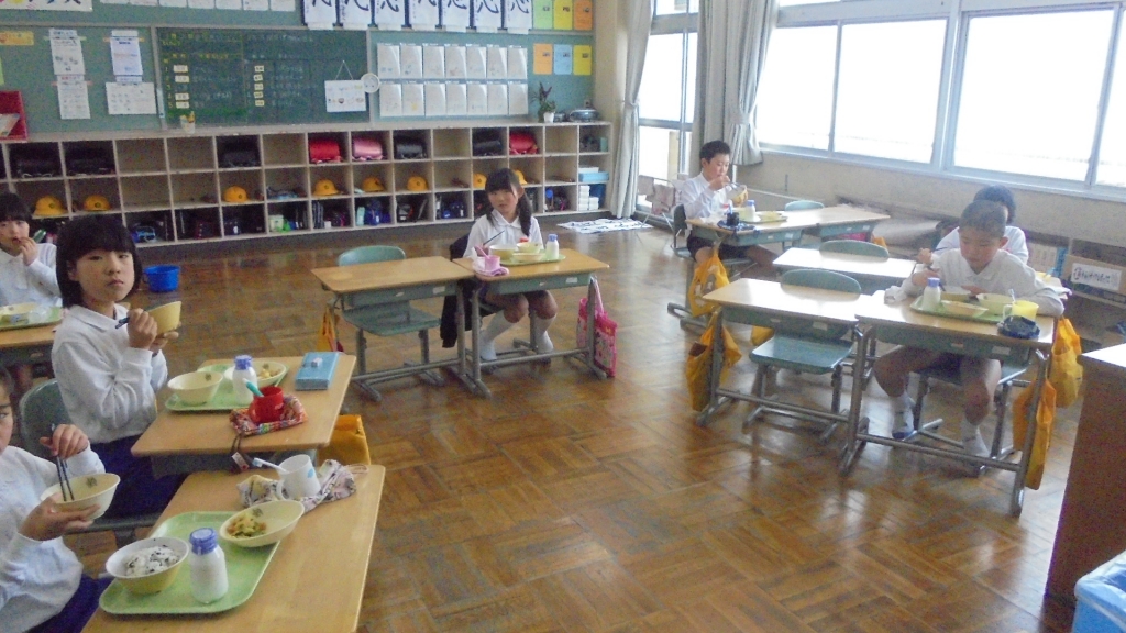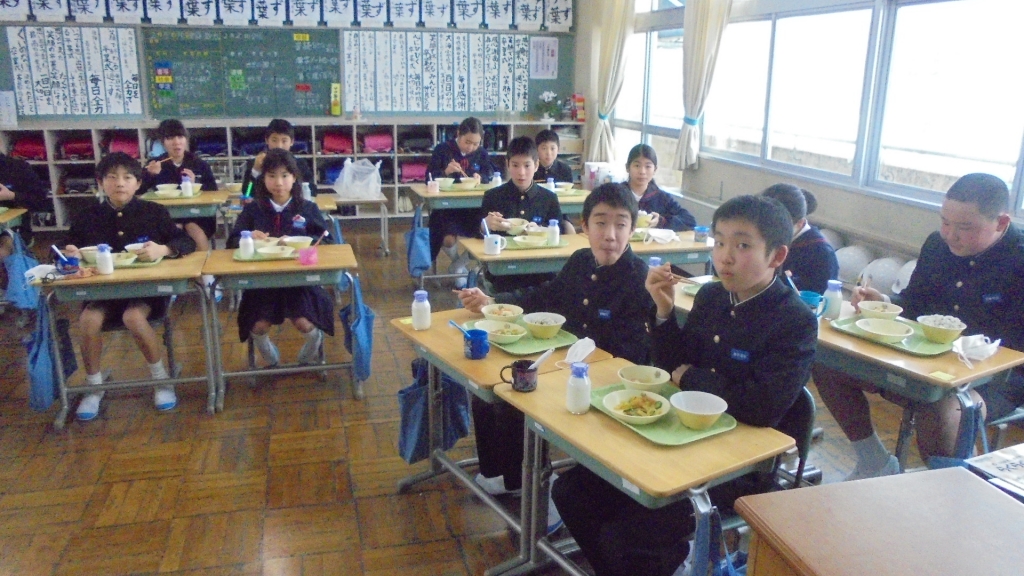 今週唯一の登校日、月曜の給食風景です。3年生がインフルエンザで欠席が目立っています。 写真のサイズ大きくしてあります、ダウンロードどうぞ。