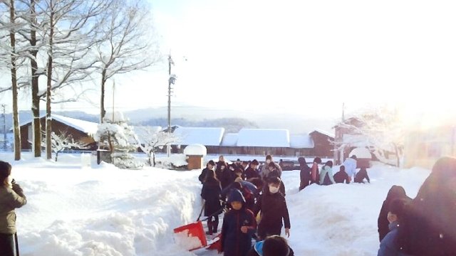 みんな無事登校できました。大雪のための休校があったので二日ぶりです。何をして過ごしたのでしょうね。この様子を見ると、家で雪かきが上手になったんだなぁと思いました。ありがとう、除雪機具が足りなくてなかよく交代で使うことができましたね。