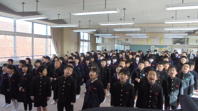かぜの流行を考慮して、あたたかい音楽室で2月の集会を実施しました。暖かいと姿勢の乱れが心配ですが、大海っ子はどこでもきちんと人の話を聞くことができます。生活目標について毎月話しています。お家でお話が聞けているか話題にしてみて下さいね。