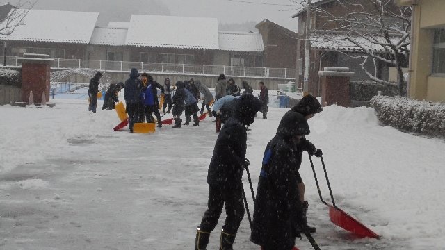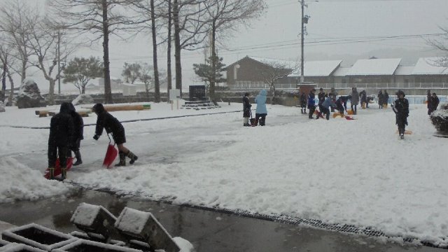 そんな中、6年生が総出で玄関前の除雪に取り組みました。さわやか委員のメンバーも。ありがとう。窓から「がんばって。ありがとう。」の声かけしてくれるやさしい子もいます。
