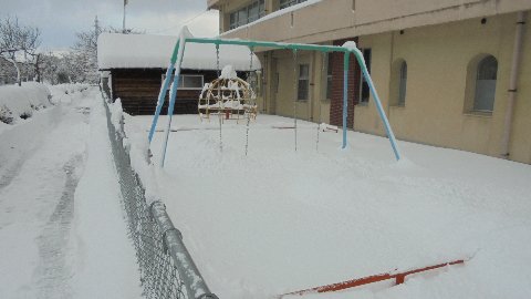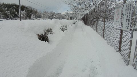 2018年2月6日 10時12分 朝早くから歩道をこんなにきれいにしていただきました。夜明け前から作業して下さったので、休校のお知らせメールが間に合いませんでしたが、明日の登校が安心です。中沼区のみなさんです。ありがとうございます。歩道の脇に目をやるとブランコが・・・埋まっています・・・