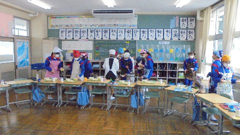 安達スポーツインストラクターに体育を補助していただきました。なんと昼食をはさんで4時間、寒かったでしょう。でも、昼食は6年教室で温かいもてなしを受けて給食を食べました。
