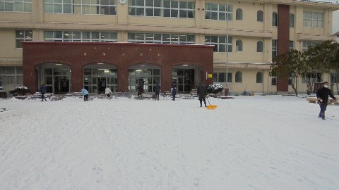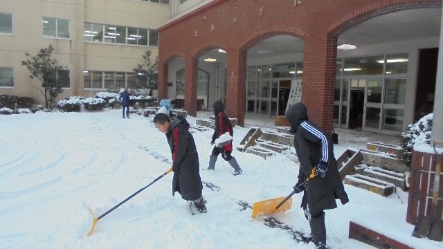 今日もさわやか委員のみなさんが雪かきをしていました。この寒さで融雪装置が凍ってしまい、雪すかしは大変ありがたかったです。明日になったら、また積もるのでしょうか。