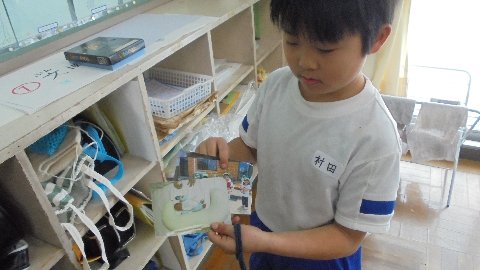 2年生教室をのぞくと何やら大切そうに写真を持っています。見せてもらうと、赤ちゃんの時の写真が・・・今度の授業参観で使うそうです。どんな勉強をするのでしょうね。