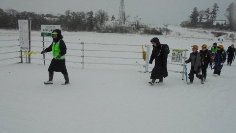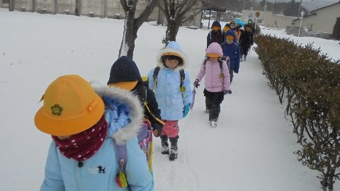 寒さが続きます。こんな厳しいが長く続くのはめずらしいですね。今日で何日目でしょう。今朝はどの集団登校班も徒歩で学校までがんばりました。雪道や天候になれてきましたが、こんなときこそもう一度安全を確認したいものです。もう一日、明日土曜も安全に登校してほしいです。