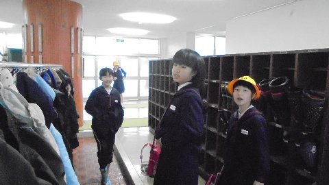 厳寒の中寒風に吹きさらされて登校。真っ先に教室かと思いきや、子どもたちはゆったり友だちと過ごしています。早く教室に行って暖かくなれば良いのに。本当に元気です。