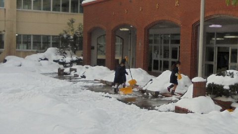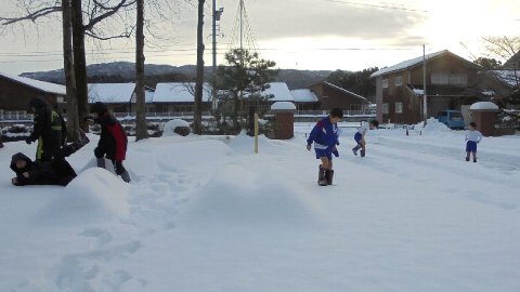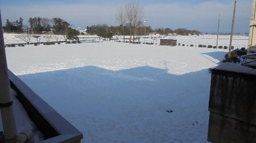 昼休みにふと廊下から外に目をやると・・・雪の上に足跡がいっぱい。今回の雪はタイミングが悪く、雪だるまが作りにくかったようで見当たりませんでした。