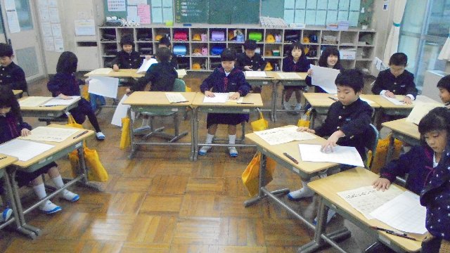 昨日は、始業式の後各教室で「書き初め大会」を行いました。冬休み練習してきた成果を出し切ることができたかな。中には50枚も練習してきた子もいました。