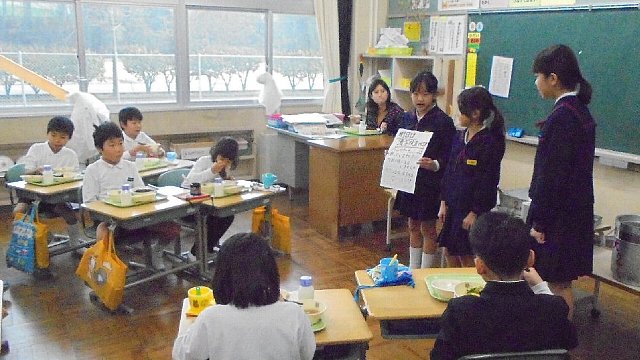 お昼の放送できちんとできていた教室がほめられます。そろそろです・・・あっ、流れました・・・4年生と5年生です。4年生はパーフェクト。ご家庭で今日の結果チェック願います。