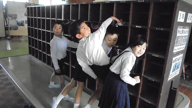 写真は、教室だけでなく下駄箱も一年の汚れをきれいにしていた3年生です。教室ロッカーの整理整頓もすばらしかったですね。