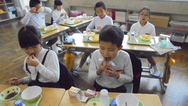 クリスマスケーキは食べたでしょうか。学校では、先週最後の給食で一足早くケーキが出されました。かわいらしい箱に入った、かわいらしいケーキでした。みんなおいしそうに食べていました。かわいらしいので一口で・・・お家では大きなケーキをたくさん食べたことでしょうね。