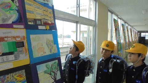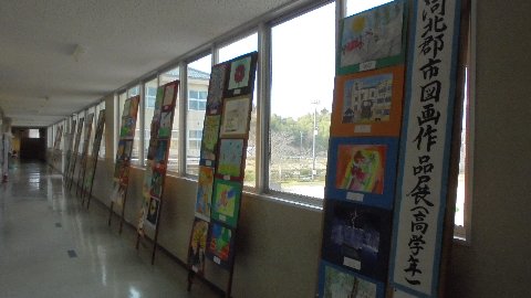 河北郡市図画作品展の高学年作品が巡回してきました。
