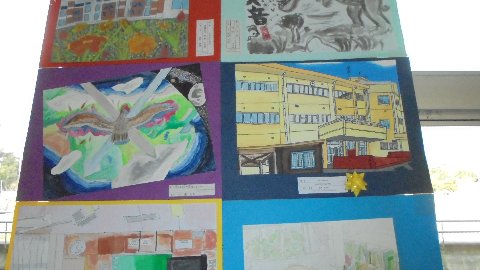今回は5年生大多さん、6年生宮本さんの作品が学校代表として巡回しています。他の学校の子どもたちの作品も力作ぞろいです。展示予定は、新年明けてからでしたが、急遽通知表渡しにあわせて職員室前に飾りました。ご覧になったでしょうか。新年も二日間飾られています。遠慮無く来校下さい。