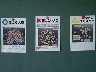 味噌づくりのために、収穫した大豆の選別作業を行いました。たくさんの大豆をコツコツと選別する作業を3年生のみんなで体験してみると、農作業の大変さを実感しまました。この後は選別した大豆を使って、味噌づくりを行うことになります。