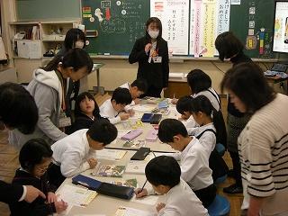 1,2年生のお手紙教室を行いました。日本郵便北陸支社の職員の方を講師としてお招きし、学習室で行いました。とてもわかりやすく年賀状の書き方を教えていただきました。子どもたちは、手紙を送る相手に気持ちが伝わるよう、一生懸命に書いていました。