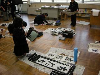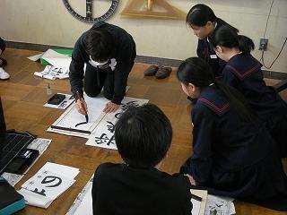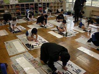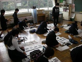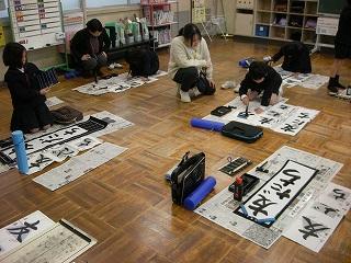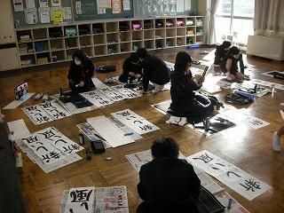 3学期初日に行われる書き初め大会に向けて練習しました。講師は、昨年度から書写指導でお世話になっている竹中先生です。先生のお話をしっかり聞いて各自、練習に取り組みました。