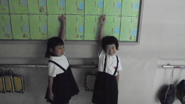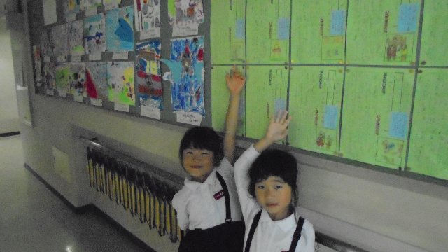 国語で学習したカードがはられました。「夕焼け」という教材を勉強しました。廊下で「見て見て!」と言われたので自分のを指さしてご覧と言ったら、上手に教えてくれました。