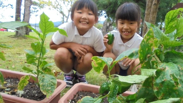 3年生が大切に育てたピーマンが収穫の時期になっています。時季外れでなお価値が上がりますね。持ち帰って大切に家族と食して下さい。生でかぶりつきたくなるようなみずみずしさです。