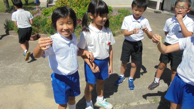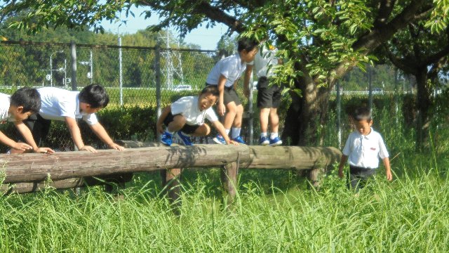 1学期は教室横の遊具広場で遊ぶことの多かった1年生が足を伸ばして運動場校舎反対側まで遊びに行っています。100mくらい走らないとたどりつけません。そんなことものともせず、みんなでかけっこして遊び場に向かいます。3年生も遠くの鉄棒でくるくる遊んでいます。この日はゴミ拾いもしてくれました。ありがとう。