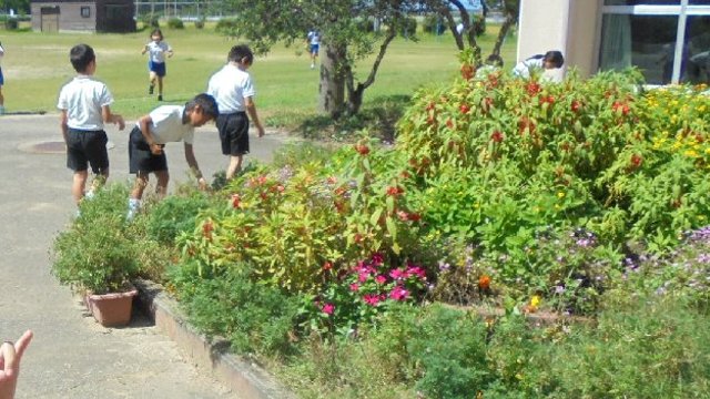 2学期2日目、もう次に備えて花を摘みました。低学年がちょこボラで手伝ってくれました。大勢だとあっという間、花はかわいそうに短い命でゆっくり咲いてる暇がありません。(笑)
