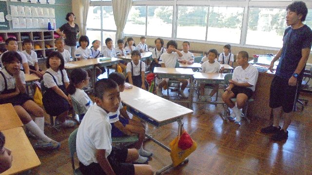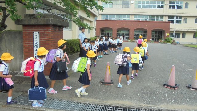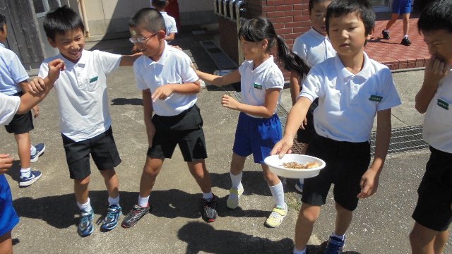 2017年9月4日 19時00分 2学期に入って3日目、新しい1週間を迎えました。土日に各所で秋祭りがあり、お疲れ?かと思っていましたが、元気なあいさつでいつも通り登校できました。玄関の挨拶グループは二ツ屋地区の子どもたちでした。遠いのに遅れずみんな早く登校しました。