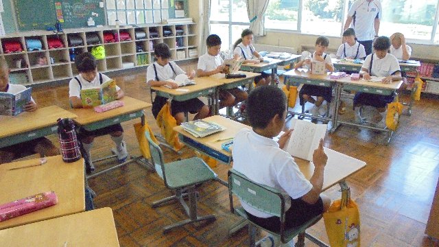 ○2年生は早速担任から読み聞かせをしてもらっています。落ち着いたスタートですね。