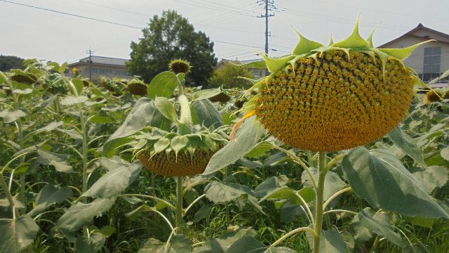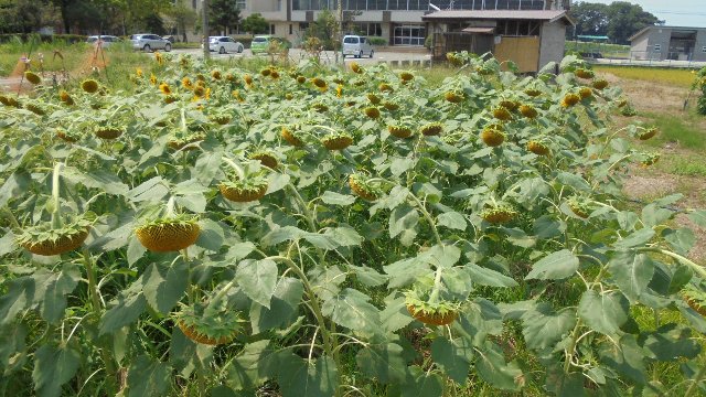 あんなにきれいだったひまわり畑、1週間あまりでご覧のように・・・きれいなときを見ていただけたでしょうか、夏休みに見頃が過ぎてしまうのですね。プールの横だったのでたくさんの人が見頃を楽しんでくれたかな。