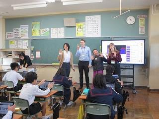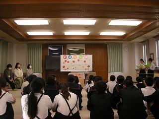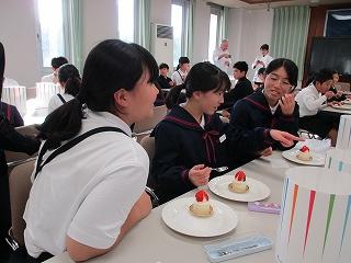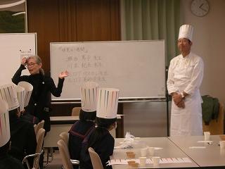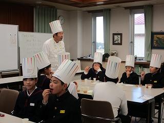 食のプロフェッショナルのルロワ・パスカルさん美砂子さん夫妻、川本紀男シェフ、「味覚の一週間」実行委員会実行委員長 瀬古篤子さんにご来校いただき、味の基本と味わうことの大切さを学ぶ「味覚の授業」を行いました。