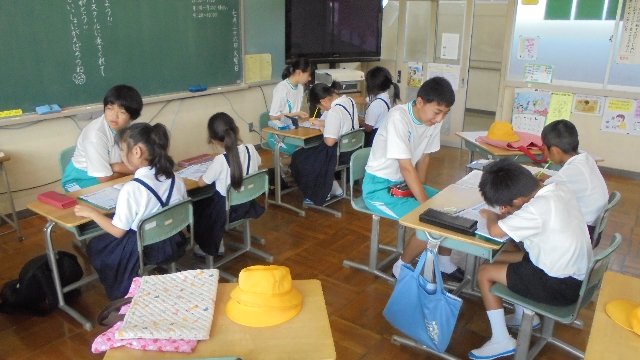 2017年7月27日 19時11分 6年生はサマースクールとして、代表の子どもたちが質問の練習をしました。