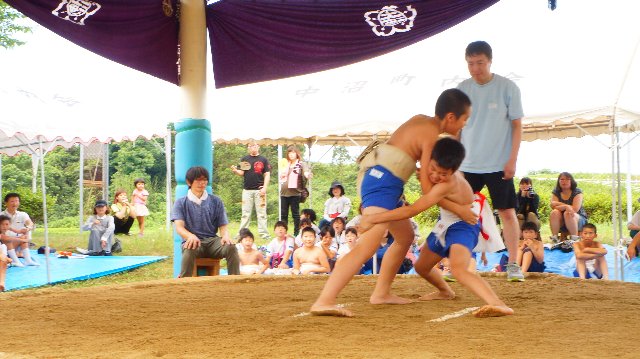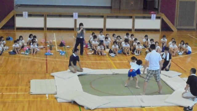 今年も暑い日になりました。その暑さに負けない熱戦が土俵上で繰りひろげられました。大きな声援の中取組が進みました。