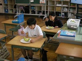 毎年3年生が交流している岡山県の蛍明小学校から、送っていただいた足守メロンを食べました。非常においしいメロンで、子どもたちはじっくりと味わっていました。