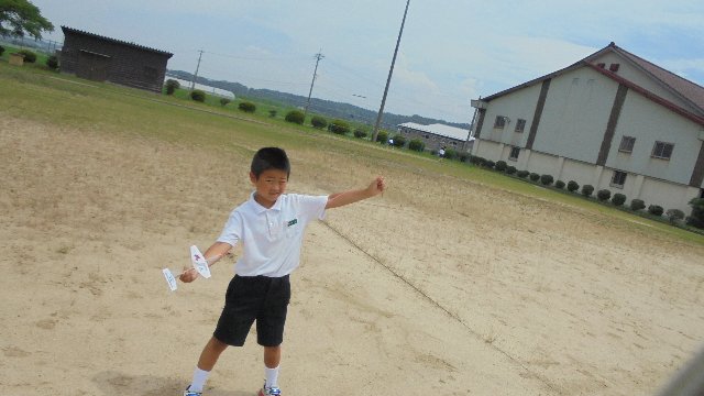 前から約束していた紙飛行機を上手に飛ばす練習が実現しました。11月に全国大会に出場する村田さんが腕前を見せてくれました。やはり上手でした。私が飛ばす飛行機はすとんと失速、村田さんの飛行機はすーっと滑空して着地します。