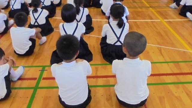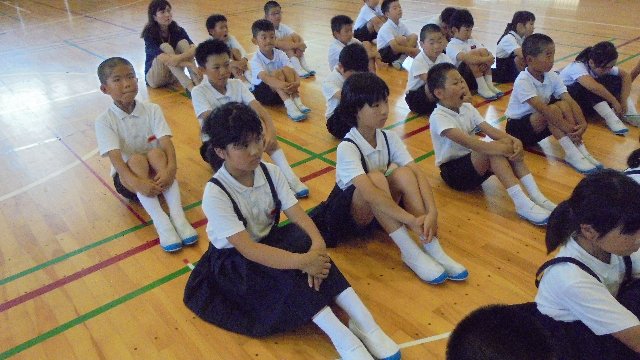 見て下さいこの姿勢!集会の間ずっと背筋を伸ばして話をしっかり聞けています。みんなの前でほめられました。他の子ども達も良い姿勢です。