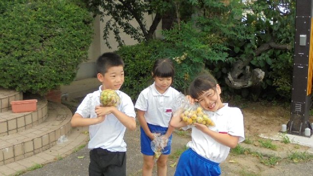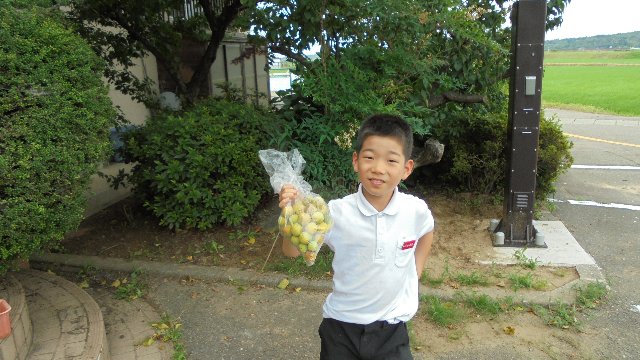 今年も体育館前の梅の実が実りました。昨年に比べると小ぶりです。持って帰ってうめジュースを作りたいというのでどうぞと。できあがって飲んだら感想を聞かせてね。
