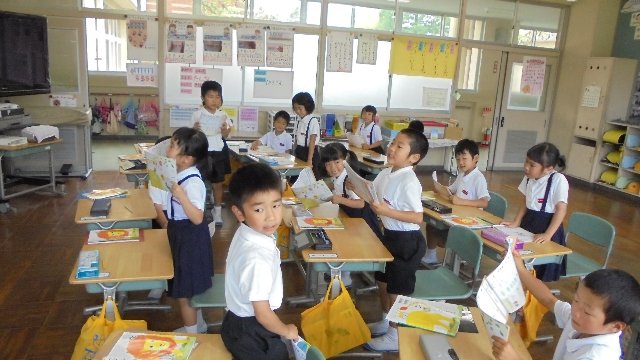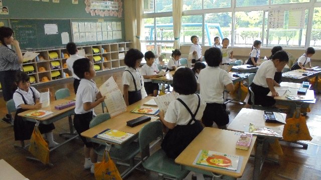 1年生は、朝一番の学習で音読をしています。一斉に、分かれて、群読で・・・いろいろな形態で。テンション上がりっぱなしです(笑)聞いていると難しい言葉がたくさん出てきます。ことわざですね。意味分かるのかな、聞いてみたいですね。