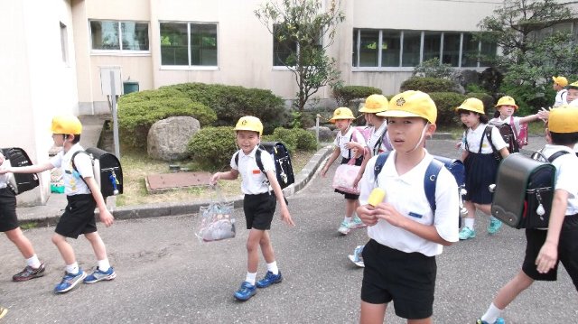 今日も一日いろいろな事がありました。下校も集団でかたまって帰るようにしています。「今日は楽しかった?」とたずねると、「うん、楽しかった。」と返事が「何が一番楽しかった?」「う-ん、勉強・・・やっぱり給食かな」という答えが(笑)