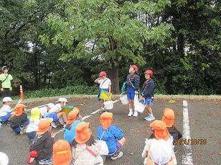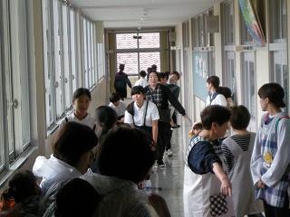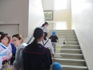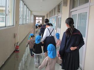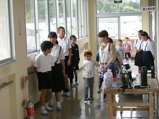 大海川が大雨により氾濫したという想定で、長休みの時間に、大海こども園と合同で水害避難訓練を行いました。園児たちは外階段と正面玄関の2か所から校舎に入って、3階まで上がり、大海小1~4年生は2階の各教室から3階に上がりました。6年生は園児の避難誘導を行いました。学校ではこのように避難しますが、昨年の大雨の時のように、各自が家にいる時、洪水の危険性が高まったらどう行動するのか、ぜひ家の人と話しておいてほしいと思います。