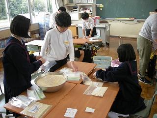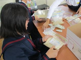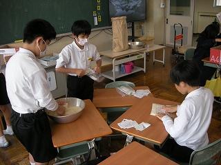 米作り体験で収穫したお米を3限目に袋詰めしました。5年生の子どもたちからのプレゼントとして、150周年記念式典に参加いただいた皆さんにお配りする予定です。