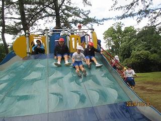 2,3限目に大海こども園の年長さんと一緒に、高松運動公園に行き、まつぼっくりやどんぐりを探したり、広場で遊んだりして秋を楽しみました。