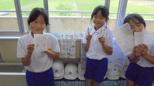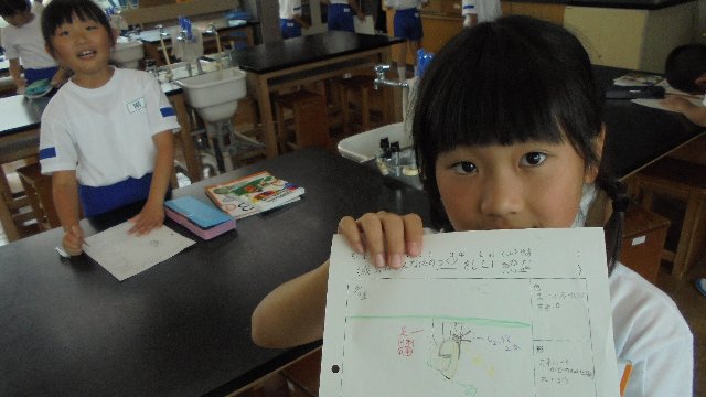 4年生は、国際理解活動でシャンさんを見送っています。3年生は理科の学習が終わって観察して仕上げたモンシロチョウのスケッチを見せてくれました。