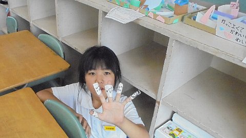 昼休み、教室ではこんかな遊びが流行っていました。「指人形」です。シャンさんがえらく気に入っていました。お客さんの注文に応じて指人形をあつらえてくれるのです。