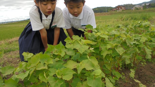 近くの田んぼからソバの実の落ち穂拾いをして、手に入れたソバが花を咲かせ始めました。見つけたのは2年生の子ども達です。毎朝、自分たちの野菜畑に水やりをしに来るので畑をよく観察しています。一面ソバの白い花が咲く予定でしたが・・・今年は1年目なのでほど遠いかな。満開になったらまた報告します。