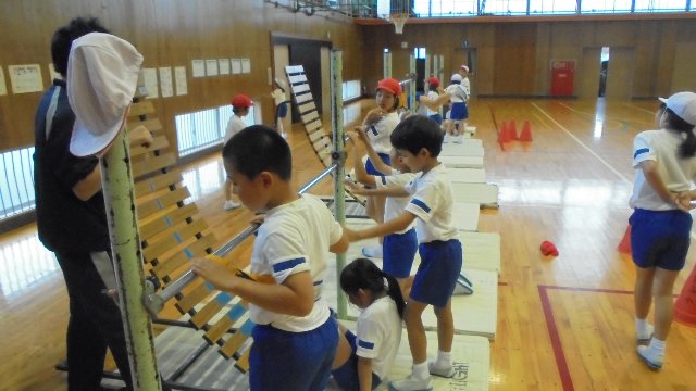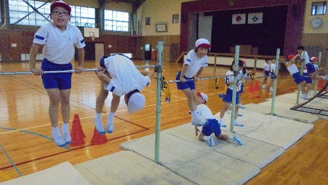 3年生が体育で鉄棒の練習をしていました。「できた、できた。」「見て、見て。」張り切って何度も練習しています。この1時間で手の豆をつぶす子が何人もいました。すごいですね、早くも来年の器械運動交歓会に向けて始動です。