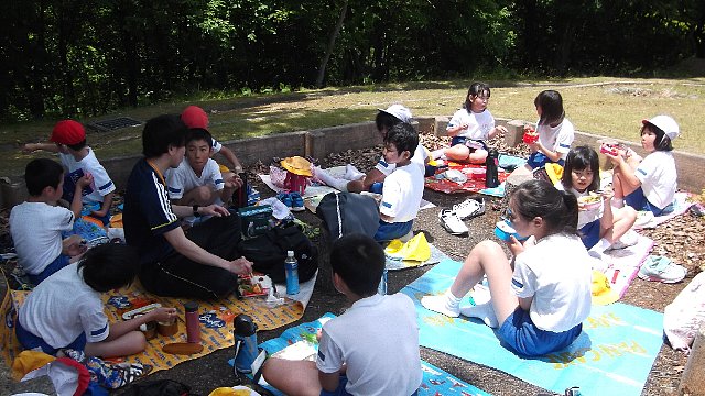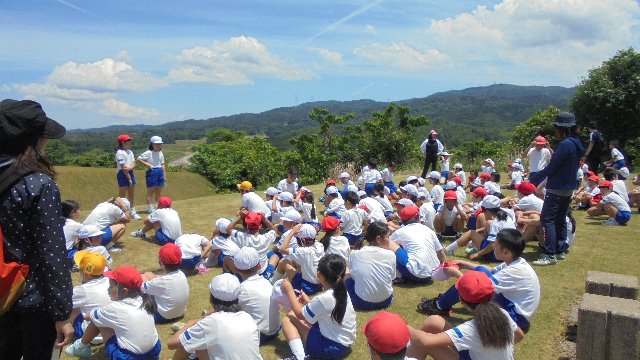 なかよし班で行動しました。6年生が中心になって例のAからH班8班で、力を合わせ、仲良く、安全にをめあてに活動できました。行きは、チェックポイントでクイズなどに挑戦しました。西山遺跡が目的地でした。広い芝生広場で思い切り遊びました。遠くに宝達山がきれいでした。ふるさと「おおみ」を感じさせる場所でした。お弁当がおいしそうでした。準備ありがとうございました。