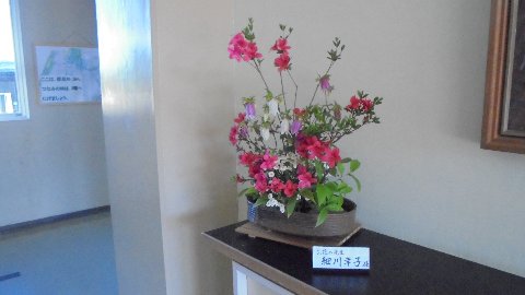最後の写真は、同じ玄関に今朝生けていただいた花、ツツジがきれいです。