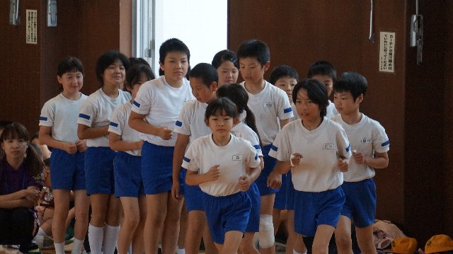 2枚目の写真は、演技終了後もこの態度!素晴らしいですね。全員が真剣に他の学校の演技を見つめています。普段の学習態度が出ています。ちなみに大海小学校は一番最初に演技しました。超ドキドキでした(笑)