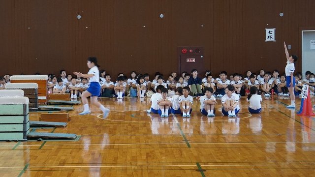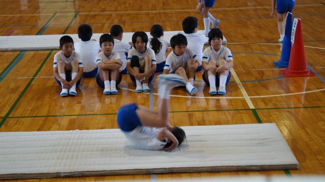 午後から宇ノ気小学校の体育館で市内すべての学校から4年生が集まり「器械運動交歓会」が行われました。