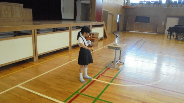 学校集会で、話し方大会リハーサル、器械運動リハーサルを行いました。先日紹介した2年生の大野さんが話し方大会なのにバイオリンを弾いています!?4年生の皆さんは決めポーズがすてきでした。今日までの成果が良く出ていました。みんな応援しているよ。