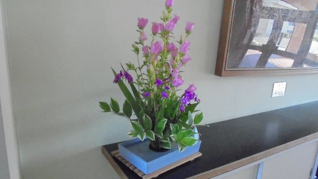玄関の生け花も8時前に入れ替わっていました。